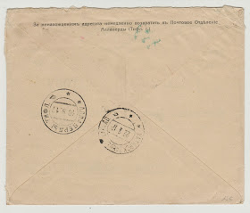The real interest of this Formular is that it is a post-revolutionary reprint of the Imperial period Formular but with the Imperial Arms completely removed from the top left of the front side. In other Districts, you see the Arms defaced in post - 1917 reprintings but these Ekaterinoslav formulars are the only ones I have seen with the Arms completely removed.  There were a couple of examples in the Zelonka collection and I also have two examples. My guess is that the reprinting dates from `1918 or even 1919 rather than 1917. The card stock used is of quite poor quality.